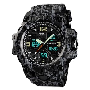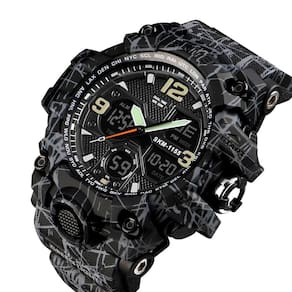 Relógio Skmei 100% Marca: Skmei Modelo: 1155B Digital: Sim Horário: Duplo Horário Mostra o dia da semana: Sim Mostra o dia do mês: Sim Despertador: Sim Cronômetro: Sim Luz: Sim A prova d'água: Sim 5ATM - 50 Metros - Respingos: Sim - Chuva: Sim - Lavar o carro: Sim - Natação: Sim Tipo de feche: Fivela Cor da pulseira: Preta Característica do vidro: Cristal Mineral Diâmetro da caixa do relógio aprox. : 5 cm Comprimento Máximo aprox. : 24,5 cm Largura da pulseira aprox. : 23 mm Peso líquido aprox. : 100g Formato: Redondo Alimentação: Bateria Marca: Não Informado Ean: 6012507380374