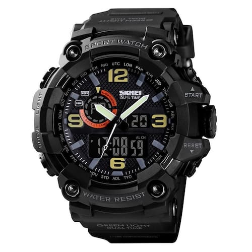 Relógio Masculino Skmei AnaDigi 1520 Preto Relógio Masculino Skmei AnaDigi 1520 - Preto Marca: Skmei Categoria: AnaDigi Analógico: Sim 1 Horário Ponteiros Fluorescentes: Sim Digital: Sim 1 Horário Calendário: Sim Despertador: Sim Mostra o Dia da Semana: Sim Mostra o Dia do Mês: Sim Cronômetro: Sim Contador Regressivo: Não Luz: Sim Cor da Iluminação: Verde Resistente à Água: 5 ATM Pode ser Utilizado para nadar no raso, por pouco tempo submerso - Respingos: Sim - Chuva: Sim - Lavar Carro: Sim - Lavar Louça: Sim - Natação: Sim - Mergulho: Não Característica do Vidro: Selecione Tipo de Fecho: Fivela Cor da Caixa: Preto Material da Caixa: Plástico Formato da Caixa: Redondo Diâmetro da Caixa: 50,00 mm Espessura da Caixa: 19,20 mm Cor da Pulseira: Preto Material da Pulseira: Plástico Largura da Pulseira: 21,00 mm Comprimento Máximo da Pulseira: 240,00 mm Alimentação: Bateria Interna Peso Líquido: 0,080 Kg Modelo: 1520 Cor Predominante: Preto : 12 Meses Conteúdo da Embalagem: 01 Relógio 01 Embalagem 01 Termo de Ean: 7896575098145