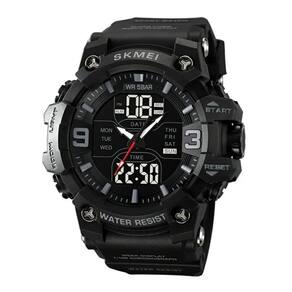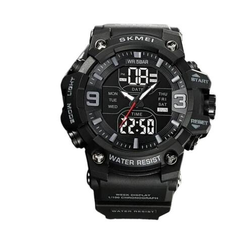 Relógio Masculino Skmei AnaDigi 2222 Preto Relógio Masculino Skmei AnaDigi 2222 Preto Marca: Skmei Categoria: AnaDigi ógico: Sim 1 Horário Ponteiros Fluorescentes: Selecione Digital: Sim 1 Horário Calendário: Sim Despertador: Sim Mostra o Dia da Semana: Sim Mostra o Dia do Mês: Sim Cronômetro: Sim Luz: Sim Cor da Iluminação: Verde Resistente à Água: 5 ATM Pode ser para nadar no raso, por pouco tempo submerso - Respingos: Sim - Chuva: Sim - Lavar Carro: Sim - Lavar Louça: Sim - Natação: Sim - Mergulho: Não Característica do Vidro: Selecione Tipo de Fecho: Fivela Cor da Caixa: Preto Material da Caixa: Plástico Formato da Caixa: Redondo Diâmetro da Caixa: 52,50 mm Espessura da Caixa: 17,50 mm Cor da Pulseira: Preto Material da Pulseira: Plástico Largura da Pulseira: 21,50 mm Comprimento Máximo da Pulseira: 260,00 mm Alimentação: Bateria Interna Peso Líquido: 0,075 Kg Modelo: 2222 Cor Predominante: Preto : 12 Meses Conteúdo da Embalagem: 01 Relógio 01 Embalagem 01 Termo de Marca: Não Informado