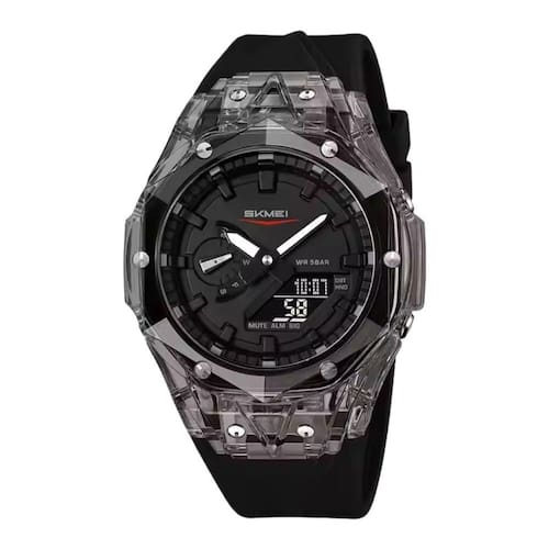 Relógio Masculino Skmei AnaDigi 2411 Preto Relógio Masculino Skmei AnaDigi 2411 Preto Marca: Skmei Categoria: AnaDigi ógico: Sim 1 Horário Ponteiros Fluorescentes: Selecione Digital: Sim 1 Horário Calendário: Sim Mostra o Dia da Semana: Sim Mostra o Dia do Mês: Sim Cronômetro: Sim Contador Regressivo: Sim Luz: Sim Cor da Iluminação: Branco Resistente à Água: 5 ATM Pode ser para nadar no raso, por pouco tempo submerso - Respingos: Sim - Chuva: Sim - Lavar Carro: Sim - Lavar Louça: Sim - Natação: Sim - Mergulho: Não Característica do Vidro: Acrílico Tipo de Fecho: Fivela Cor da Caixa: Preto Material da Caixa: Plástico Formato da Caixa: Redondo Diâmetro da Caixa: 43,00 mm Espessura da Caixa: 14,00 mm Cor da Pulseira: Preto Material da Pulseira: Borracha Largura da Pulseira: 20,00 mm Comprimento Máximo da Pulseira: 250,00 mm Alimentação: Bateria Interna Peso Líquido: 0,055 Kg Modelo: 2411 Cor Predominante: Preto : 12 Meses Conteúdo da Embalagem: 01 Relógio 01 Embalagem 01 Termo de Marca: Não Informado
