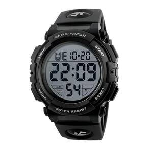 Relógio Masculino Skmei Digital 1258 Preto Relógio Masculino Skmei Digital 1258 Preto Marca: Skmei Categoria: Digital Analógico: Não Digital: Sim 1 Horário Calendário: Sim Despertador: Sim Mostra o Dia da Semana: Sim Mostra o Dia do Mês: Sim Cronômetro: Sim Luz: Sim Cor da Iluminação: Verde Resistente à Água: 5 ATM Pode ser Utilizado para nadar no raso, por pouco tempo submerso - Respingos: Sim - Chuva: Sim - Lavar Carro: Sim - Lavar Louça: Sim - Natação: Sim - Mergulho: Não Característica do Vidro: Acrílico Tipo de Fecho: Fivela Cor da Caixa: Preto Material da Caixa: Plástico Formato da Caixa: Redondo Diâmetro da Caixa: 49,00 mm Espessura da Caixa: 17,00 mm Cor da Pulseira: Preto Material da Pulseira: Plástico Largura da Pulseira: 21,00 mm Comprimento Máximo da Pulseira: 260,00 mm Alimentação: Bateria Interna Peso Líquido: 0,065 Kg Modelo: 1258 Cor Predominante: Preto : 12 Meses Conteúdo da Embalagem: 01 Relógio 01 Embalagem 01 Termo de Ean: 7891368320250