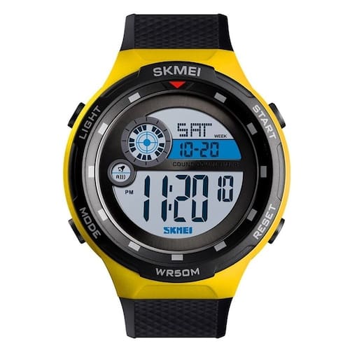 Marca: Skmei Categoria: Digital Analógico: Não Digital: Sim (1 Horário) Calendário: Sim Despertador: Sim Mostra o Dia da Semana: Sim Mostra o Dia do Mês: Sim Cronômetro: Sim Contador Regressivo: Sim Luz: Sim Cor da Iluminação: Verde Resistente à Água: 5 ATM - Respingos: Sim - Chuva: Sim - Lavar Carro: Sim - Lavar Louça: Sim - Natação: Sim - Mergulho: Não Característica do Vidro: Acrílico Tipo de Fecho: Fivela Cor da Caixa: Amarelo Material da Caixa: Plástico Formato da Caixa: Redondo Diâmetro da Caixa: 47,90 (mm) Espessura da Caixa: 15,30 (mm) Cor da Pulseira: Preto Material da Pulseira: Plástico Largura da Pulseira: 21,80 (mm) Comprimento Máximo da Pulseira: 250,00 (mm) Alimentação: Bateria Interna Peso Líquido: 0,050 Kg Modelo: 1465 Cor Predominante: Preto Cor Diferencial: Amarelo Garantia: 12 Meses