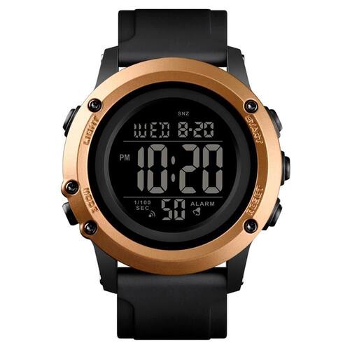Relógio Masculino Skmei Digital 1506 - Preto e Dourado Relógio Masculino Skmei Digital 1506 - Preto e Dourado Marca: Skmei Categoria: Digital ógico: Não Digital: Sim 1 Horário Calendário: Sim Despertador: Sim Mostra o Dia da Semana: Sim Mostra o Dia do Mês: Sim Cronômetro: Sim Contador Regressivo: Sim Luz: Sim Cor da Iluminação: Verde Resistente à Água: 5 ATM Pode ser para nadar no raso, por pouco tempo submerso - Respingos: Sim - Chuva: Sim - Lavar Carro: Sim - Lavar Louça: Sim - Natação: Sim - Mergulho: Não Característica do Vidro: Acrílico Tipo de Fecho: Fivela Cor da Caixa: Dourado Material da Caixa: Plástico Formato da Caixa: Redondo Diâmetro da Caixa: 51,50 mm Espessura da Caixa: 14,10 mm Cor da Pulseira: Preto Material da Pulseira: Plástico Largura da Pulseira: 25,50 mm Comprimento Máximo da Pulseira: 250,00 mm Alimentação: Bateria Interna Peso Líquido: 0,058 Kg Modelo: 1506 Cor Predominante: Preto Cor Diferencial: Dourado : 12 Meses Conteúdo da Embalagem: 01 Relógio 01 Embalagem 01 Termo de Marca: Não Informado