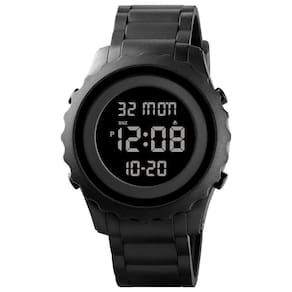 Relógio Masculino Skmei Digital 1631 - Preto Relógio Masculino Skmei Digital 1631 - Preto Marca: Skmei Categoria: Digital Analógico: Não Digital: Sim (1 Horário) Calendário: Sim Despertador: Sim Mostra o Dia da Semana: Sim Mostra o Dia do Mês: Sim Cronômetro: Sim Contador Regressivo: Sim Luz: Sim Cor da Iluminação: Verde Resistente à Água: 5 ATM (Pode ser usado para nadar no raso, por pouco tempo submerso) - Respingos: Sim - Chuva: Sim - Lavar Carro: Sim - Lavar Louça: Sim - Natação: Sim - Mergulho: Não Característica do Vidro: Acrílico Tipo de Fecho: Fivela Cor da Caixa: Preta com Detalhe em Branco Material da Caixa: Plástico Formato da Caixa: Redondo Diâmetro da Caixa: 41,50 (mm) Espessura da Caixa: 13,00 (mm) Cor da Pulseira: Preta e Azul Material da Pulseira: Borracha Largura da Pulseira: 19,90 (mm) Comprimento Máximo da Pulseira: 210,00 (mm) Alimentação: Bateria Interna Peso Líquido: 0,040 Kg Modelo: 1631 Cor Predominante: Preto Garantia: 12 Meses