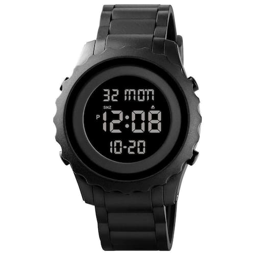 Relógio Masculino Skmei Digital 1631 - Preto Relógio Masculino Skmei Digital 1631 - Preto Marca: Skmei Categoria: Digital Analógico: Não Digital: Sim (1 Horário) Calendário: Sim Despertador: Sim Mostra o Dia da Semana: Sim Mostra o Dia do Mês: Sim Cronômetro: Sim Contador Regressivo: Sim Luz: Sim Cor da Iluminação: Verde Resistente à Água: 5 ATM (Pode ser usado para nadar no raso, por pouco tempo submerso) - Respingos: Sim - Chuva: Sim - Lavar Carro: Sim - Lavar Louça: Sim - Natação: Sim - Mergulho: Não Característica do Vidro: Acrílico Tipo de Fecho: Fivela Cor da Caixa: Preta com Detalhe em Branco Material da Caixa: Plástico Formato da Caixa: Redondo Diâmetro da Caixa: 41,50 (mm) Espessura da Caixa: 13,00 (mm) Cor da Pulseira: Preta e Azul Material da Pulseira: Borracha Largura da Pulseira: 19,90 (mm) Comprimento Máximo da Pulseira: 210,00 (mm) Alimentação: Bateria Interna Peso Líquido: 0,040 Kg Modelo: 1631 Cor Predominante: Preto Garantia: 12 Meses Conteúdo da Embalagem: 01 Relógio 01 Embalagem 01 Termo de Garantia