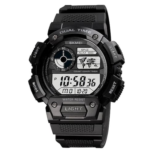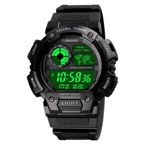 Relógio Masculino Skmei Digital 1723 Preto Relógio Masculino Skmei Digital 1723 Preto Marca: Skmei Categoria: Digital Analógico: Não Digital: Sim 1 Horário Calendário: Sim Despertador: Sim Mostra o Dia da Semana: Sim Mostra o Dia do Mês: Sim Cronômetro: Sim Contador Regressivo: Sim Luz: Sim Cor da Iluminação: Verde Resistente à Água: 5 ATM Pode ser Utilizado para nadar no raso, por pouco tempo submerso - Respingos: Sim - Chuva: Sim - Lavar Carro: Sim - Lavar Louça: Sim - Natação: Sim - Mergulho: Não Característica do Vidro: Acrílico Tipo de Fecho: Fivela Cor da Caixa: Preto Material da Caixa: Plástico Formato da Caixa: Redondo Diâmetro da Caixa: 48,00 mm Espessura da Caixa: 15,00 mm Cor da Pulseira: Preto Material da Pulseira: Plástico Largura da Pulseira: 21,00 mm Comprimento Máximo da Pulseira: 235,00 mm Alimentação: Bateria Interna Peso Líquido: 0,049 Kg Modelo: 1723 Cor Predominante: Preto : 12 Meses Conteúdo da Embalagem: 01 Relógio 01 Embalagem 01 Termo de Ean: 7898563351171