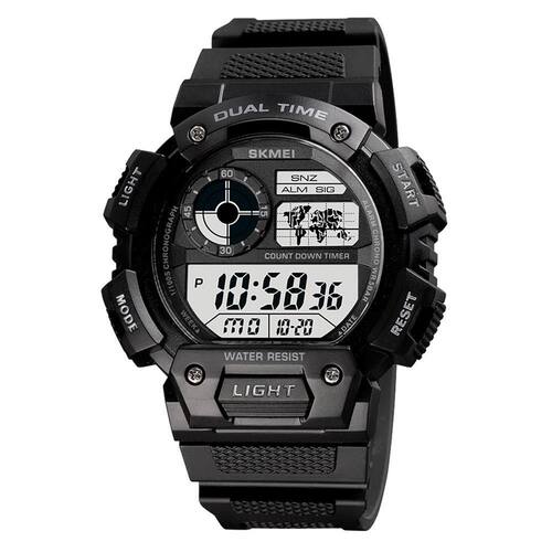 Relógio Masculino Skmei Digital 1723 Preto Relógio Masculino Skmei Digital 1723 Preto Marca: Skmei Categoria: Digital ógico: Não Digital: Sim 1 Horário Calendário: Sim Despertador: Sim Mostra o Dia da Semana: Sim Mostra o Dia do Mês: Sim Cronômetro: Sim Contador Regressivo: Sim Luz: Sim Cor da Iluminação: Verde Resistente à Água: 5 ATM Pode ser para nadar no raso, por pouco tempo submerso - Respingos: Sim - Chuva: Sim - Lavar Carro: Sim - Lavar Louça: Sim - Natação: Sim - Mergulho: Não Característica do Vidro: Acrílico Tipo de Fecho: Fivela Cor da Caixa: Preto Material da Caixa: Plástico Formato da Caixa: Redondo Diâmetro da Caixa: 48,00 mm Espessura da Caixa: 15,00 mm Cor da Pulseira: Preto Material da Pulseira: Plástico Largura da Pulseira: 21,00 mm Comprimento Máximo da Pulseira: 235,00 mm Alimentação: Bateria Interna Peso Líquido: 0,049 Kg Modelo: 1723 Cor Predominante: Preto : 12 Meses Conteúdo da Embalagem: 01 Relógio 01 Embalagem 01 Termo de