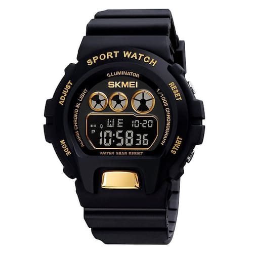 Relógio Masculino Skmei Digital 1775 Preto Relógio Masculino Skmei Digital 1775 Preto Marca: Skmei Categoria: Digital Analógico: Não Digital: Sim 1 Horário Calendário: Sim Despertador: Sim Mostra o Dia da Semana: Sim Mostra o Dia do Mês: Sim Cronômetro: Sim Contador Regressivo: Não Luz: Sim Cor da Iluminação: Verde Resistente à Água: 5 ATM Pode ser Utilizado para nadar no raso, por pouco tempo submerso - Respingos: Sim - Chuva: Sim - Lavar Carro: Sim - Lavar Louça: Sim - Natação: Sim - Mergulho: Não Característica do Vidro: Acrílico Tipo de Fecho: Fivela Cor da Caixa: Preto Material da Caixa: Plástico Formato da Caixa: Redondo Diâmetro da Caixa: 45,00 mm Espessura da Caixa: 16,00 mm Cor da Pulseira: Preto Material da Pulseira: Plástico Largura da Pulseira: 19,00 mm Comprimento Máximo da Pulseira: 215,00 mm Alimentação: Bateria Interna Peso Líquido: 0,043 Kg Modelo: 1775 Cor Predominante: Preto : 12 Meses Conteúdo da Embalagem: 01 Relógio 01 Embalagem 01 Termo de