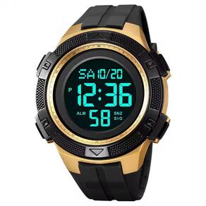 Relógio Masculino Skmei Digital 2078 Preto e Dourado Relógio Masculino Skmei Digital 2078 Preto e Dourado Marca: Skmei Categoria: Digital ógico: Não Digital: Sim 1 Horário Calendário: Sim Despertador: Sim Mostra o Dia da Semana: Sim Mostra o Dia do Mês: Sim Cronômetro: Sim Contador Regressivo: Sim Luz: Sim Cor da Iluminação: Resistente à Água: 5 ATM Pode ser para nadar no raso, por pouco tempo submerso - Respingos: Sim - Chuva: Sim - Lavar Carro: Sim - Lavar Louça: Sim - Natação: Sim - Mergulho: Não Característica do Vidro: Acrílico Tipo de Fecho: Fivela Cor da Caixa: Preto Material da Caixa: Plástico Formato da Caixa: Redondo Diâmetro da Caixa: 48,00 mm Espessura da Caixa: 16,50 mm Cor da Pulseira: Preto Material da Pulseira: Plástico Largura da Pulseira: 20,00 mm Comprimento Máximo da Pulseira: 240,00 mm Alimentação: Bateria Interna Peso Líquido: 055 Kg Modelo: 2078 Cor Predominante: Preto Cor Diferencial: Dourado : 12 Meses Conteúdo da Embalagem: 01 Relógio 01 Embalagem 01 Termo de Marca: Não Informado