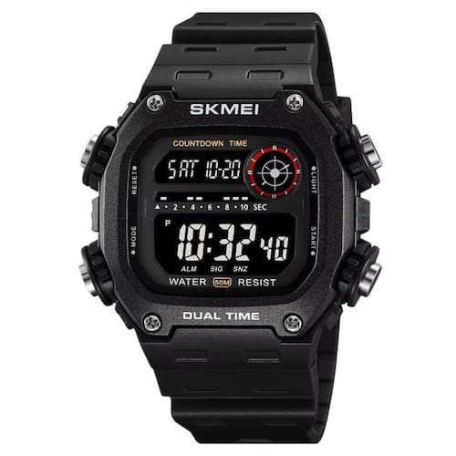Relógio Masculino Skmei Digital 2126 Preto Relógio Masculino Skmei Digital 2126 Preto Marca: Skmei Categoria: Digital ógico: Não Digital: Sim 2 Horário Calendário: Sim Despertador: Sim Mostra o Dia da Semana: Sim Mostra o Dia do Mês: Sim Cronômetro: Sim Contador Regressivo: Sim Luz: Sim Cor da Iluminação: Verde Resistente à Água: 5 ATM Pode ser para nadar no raso, por pouco tempo submerso - Respingos: Sim - Chuva: Sim - Lavar Carro: Sim - Lavar Louça: Sim - Natação: Sim - Mergulho: Não Característica do Vidro: Acrílico Tipo de Fecho: Fivela Cor da Caixa: Preto Material da Caixa: Plástico Formato da Caixa: Quadrado Comprimento da Caixa: 40,00 mm Largura da Caixa: 42,00 mm Espessura da Caixa: 14,00 mm Cor da Pulseira: Preto Material da Pulseira: Borracha Largura da Pulseira: 20,00 mm Comprimento Máximo da Pulseira: 250,00 mm Alimentação: Bateria Interna Peso Líquido: 0,050 Kg Modelo: 2126 Cor Predominante: Preto : 12 Meses Conteúdo da Embalagem: 01 Relógio 01 Embalagem 01 Termo de Marca: Não Informado
