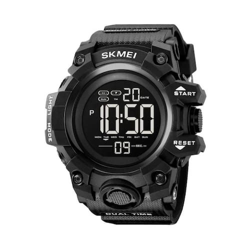 Relógio Masculino Skmei Digital 2140 Preto Relógio Masculino Skmei Digital 2140 Preto Marca: Skmei Categoria: Digital Analógico: Não Digital: Sim 1 Horário Calendário: Sim Despertador: Sim Mostra o Dia da Semana: Sim Mostra o Dia do Mês: Sim Contador Regressivo: Sim Luz: Sim Cor da Iluminação: Verde Resistente à Água: 5 ATM Pode ser Utilizado para nadar no raso, por pouco tempo submerso - Respingos: Sim - Chuva: Sim - Lavar Carro: Sim - Lavar Louça: Sim - Natação: Sim - Mergulho: Não Característica do Vidro: Acrílico Tipo de Fecho: Fivela Cor da Caixa: Preto Material da Caixa: Plástico Formato da Caixa: Redondo Diâmetro da Caixa: 47,00 mm Espessura da Caixa: 17,50 mm Cor da Pulseira: Preto Material da Pulseira: Plástico Largura da Pulseira: 21,00 mm Comprimento Máximo da Pulseira: 250,00 mm Alimentação: Bateria Interna Peso Líquido: 0,070 Kg Modelo: 2140 Cor Predominante: Preto : 12 Meses Conteúdo da Embalagem: 01 Relógio 01 Embalagem 01 Termo de Ean: 7891368320281