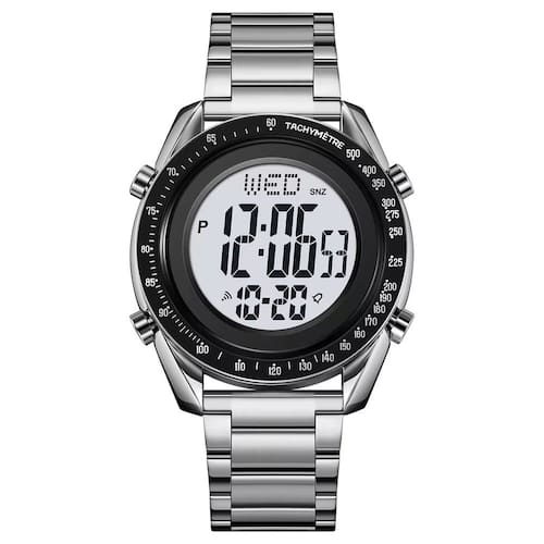 Relógio Masculino Skmei Digital 2145 Prata Marca: SkmeiCategoria: DigitalAnalógico: NãoDigital: Sim (1 Horário)Calendário: SimDespertador: SimMostra o Dia da Semana: SimMostra o Dia do Mês: SimCronômetro: SimContador Regressivo: SimLuz: SimCor da Iluminação: Resistente à Água: 3 ATM (Resiste a imersões breves)- Respingos: Sim- Chuva: Sim- Lavar Carro: Sim- Lavar Louça: Sim- Natação: Não- Mergulho: NãoCaracterística do Vidro: Cristal MineralTipo de Fecho: Dobrável com BotãoCor da Caixa: PrataMaterial da Caixa: Metal Banho IPFormato da Caixa: RedondoDiâmetro da Caixa: 40,00 (mm)Espessura da Caixa: 12,50 (mm)Cor da Pulseira: PrataMaterial da Pulseira: MetalLargura da Pulseira: 18,00 (mm)Comprimento Máximo da Pulseira: 230,00 (mm)Alimentação: Bateria InternaPeso Líquido: 0,110 KgModelo: 2145Cor Predominante: PrataGarantia: 12 MesesConteúdo da Embalagem: 01 Relógio 01 Embalagem 01 Termo de Garantia Ean: 7891368312811