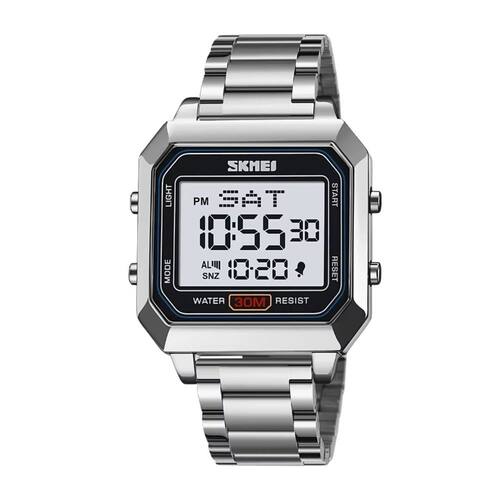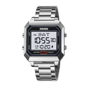 Relógio Masculino Skmei Digital 2149 PrataMarca: Skmei Categoria: Digital Analógico: Não Digital: Sim (1 Horário) Calendário: Sim Despertador: Sim Mostra o Dia da Semana: Sim Mostra o Dia do Mês: Sim Cronômetro: Sim Contador Regressivo: Sim Luz: Sim Cor da Iluminação: VerdeResistente à Água: 3 ATM (Resiste a imersões breves) - Respingos: Sim - Chuva: Sim - Lavar Carro: Sim - Lavar Louça: Sim - Natação: Não - Mergulho: Não Característica do Vidro: Cristal Mineral Tipo de Fecho: Dobrável com Botão Cor da Caixa: Prata Material da Caixa: Metal Banho IP Formato da Caixa: Quadrado Comprimento da Caixa: 40,00 (mm) Largura da Caixa: 40,00 (mm) Espessura da Caixa: 10,00 (mm) Cor da Pulseira: Prata Material da Pulseira: Aço Largura da Pulseira: 20,00 (mm) Comprimento Máximo da Pulseira: 280,00 (mm) Alimentação: Bateria Interna Peso Líquido: 0,130 Kg Modelo: 2149 Cor Predominante: Prata Garantia: 12 MesesConteúdo da Embalagem: 01 Relógio 01 Embalagem 01 Termo de Garantia