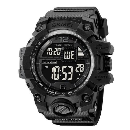 Relógio Masculino Skmei Digital 2245 Preto Relógio Masculino Skmei Digital 2245 Preto Marca: Skmei Categoria: Digital ógico: Não Digital: Sim 2 Horário Calendário: Sim Despertador: Sim Mostra o Dia da Semana: Sim Mostra o Dia do Mês: Sim Cronômetro: Sim Contador Regressivo: Sim Luz: Sim Cor da Iluminação: Verde Resistente à Água: 5 ATM Pode ser para nadar no raso, por pouco tempo submerso - Respingos: Sim - Chuva: Sim - Lavar Carro: Sim - Lavar Louça: Sim - Natação: Sim - Mergulho: Não Característica do Vidro: Acrílico Tipo de Fecho: Fivela Cor da Caixa: Preto Material da Caixa: Plástico Formato da Caixa: Redondo Diâmetro da Caixa: 48,00 mm Espessura da Caixa: 18,00 mm Cor da Pulseira: Preto Material da Pulseira: Plástico Largura da Pulseira: 21,50 mm Comprimento Máximo da Pulseira: 250,00 mm Alimentação: Bateria Interna Peso Líquido: 0,070 Kg Modelo: 2245 Cor Predominante: Preto : 12 Meses Conteúdo da Embalagem: 01 Relógio 01 Embalagem 01 Termo de Marca: Não Informado Ean: 7891368320328