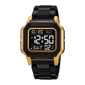 Relógio Masculino Skmei Digital 2264 Preto e Dourado Relógio Masculino Skmei Digital 2264 Preto e Dourado Marca: Skmei Categoria: Digital Analógico: Não Digital: Sim 2 Horário Calendário: Sim Despertador: Sim Mostra o Dia da Semana: Sim Mostra o Dia do Mês: Sim Cronômetro: Sim Contador Regressivo: Sim Luz: Sim Cor da Iluminação: Verde Resistente à Água: 5 ATM Pode ser Utilizado para nadar no raso, por pouco tempo submerso - Respingos: Sim - Chuva: Sim - Lavar Carro: Sim - Lavar Louça: Sim - Natação: Sim - Mergulho: Não Característica do Vidro: Acrílico Tipo de Fecho: Dobrável com Botão Cor da Caixa: Dourado Material da Caixa: Plástico Formato da Caixa: Quadrado Comprimento da Caixa: 42,00 mm Largura da Caixa: 45,00 mm Espessura da Caixa: 13,00 mm Cor da Pulseira: Preto Material da Pulseira: Plástico Largura da Pulseira: 24,00 mm Comprimento Máximo da Pulseira: 250,00 mm Alimentação: Bateria Interna Peso Líquido: 0,072 Kg Modelo: 2264 Cor Predominante: Preto Cor Diferencial: Dourado : 12 Meses Conteúdo da Embalagem: 01 Relógio 01 Embalagem 01 Termo de Ean: 7891368320731