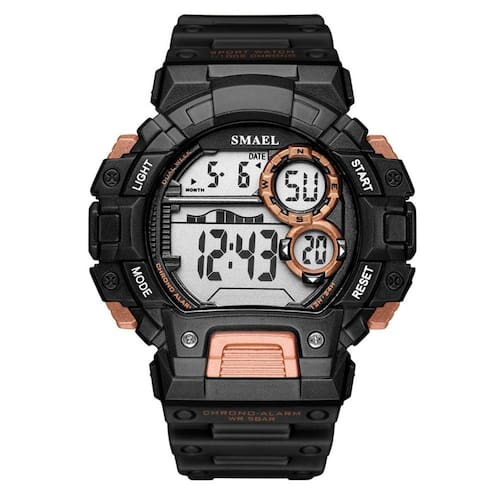 Relógio Masculino Smael Digital 1443 Preto Relógio Masculino Smael Digital 1443 Preto Marca: Smael Categoria: Digital ógico: Não Digital: Sim 1 Horário Calendário: Sim Despertador: Sim Mostra o Dia da Semana: Sim Mostra o Dia do Mês: Sim Cronômetro: Sim Contador Regressivo: Não Luz: Sim Cor da Iluminação: Verde Resistente à Água: 5 ATM Pode ser para nadar no raso, por pouco tempo submerso - Respingos: Sim - Chuva: Sim - Lavar Carro: Sim - Lavar Louça: Sim - Natação: Sim - Mergulho: Não Característica do Vidro: Acrílico Tipo de Fecho: Fivela Cor da Caixa: Preto Material da Caixa: Plástico Formato da Caixa: Redondo Diâmetro da Caixa: 51,00 mm Espessura da Caixa: 18,00 mm Cor da Pulseira: Preto Material da Pulseira: Borracha Largura da Pulseira: 22,00 mm Comprimento Máximo da Pulseira: 250,00 mm Alimentação: Bateria Interna Peso Líquido: 0,060 Kg Modelo: 1443 Cor Predominante: Preto : 12 Meses Conteúdo da Embalagem: 01 Relógio 01 Embalagem 01 Termo de Marca: Não Informado