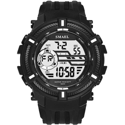 Relógio Masculino Smael Digital 1616 Preto e Branco Relógio Masculino Smael Digital 1616 Preto e Branco Marca: Smael Categoria: Digital ógico: Não Digital: Sim 1 Horário Calendário: Sim Despertador: Sim Mostra o Dia do Mês: Sim Cronômetro: Sim Luz: Sim Cor da Iluminação: Branco Resistente à Água: 5 ATM Pode ser para nadar no raso, por pouco tempo submerso - Respingos: Sim - Chuva: Sim - Lavar Carro: Sim - Lavar Louça: Sim - Natação: Sim - Mergulho: Não Característica do Vidro: Acrílico Tipo de Fecho: Fivela Cor da Caixa: Preto Material da Caixa: Plástico Formato da Caixa: Redondo Diâmetro da Caixa: 49,00 mm Espessura da Caixa: 17,00 mm Cor da Pulseira: Preto Material da Pulseira: Plástico Largura da Pulseira: 22,00 mm Comprimento Máximo da Pulseira: 250,00 mm Alimentação: Bateria Interna Peso Líquido: 0,057 Kg Modelo: 1616 Cor Predominante: Preto Cor Diferencial: Branco : 12 Meses Conteúdo da Embalagem: 01 Relógio 01 Embalagem 01 Termo de Marca: Não Informado Ean: 7891368315331