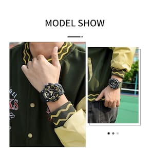 • Exibição de tempo duplo :O relógio exibe a hora local e a hora em um segundo fuso horário, tornando-o perfeito para viagens ou dupla cidadania. • Resistente ao choque :O relógio é projetado para suportar choques e impactos, tornando-o ideal para esportes e atividades ao ar livre. • Luz LED :O relógio possui uma luz LED que ilumina a tela em condições de pouca luz, garantindo fácil legibilidade. • Qualidade militar 8075 :O relógio é feito com materiais de alta qualidade e atende aos padrões militares, garantindo durabilidade e longevidade.