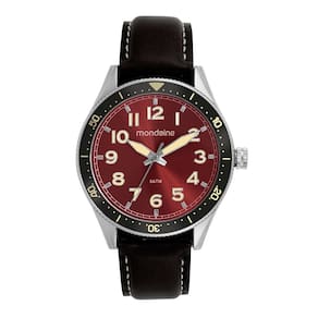 Este relógio analógico apresenta um mostrador vinho com efeito metálico, destacando-se pela numeração completa e marcações na catraca. A caixa cromada, com catraca serrilhada nas laterais, confere um design elegante e moderno. Com 4,2 cm de diâmetro, oferece um excelente ajuste ao pulso. A pulseira preta em couro autêntico, com detalhes em pespontos, e o fecho fivela garantem um ajuste seguro e confortável. Ideal para quem busca estilo, durabilidade e funcionalidade.