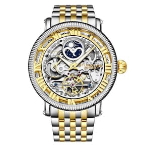 Viaje pelo mundo em confiança e conforto com a precisão dupla automática da Reserva Especial. Tamanho da caixa 48mm Alimentado por nossa série interna de movimentos automáticos ST, a Reserva Especial traz consistência e cronometragem potente ao seu pulso. Emoldurado por um painel fresado e mostrador esqueletizado, a Reserva Especial possui um Indicador AM , PM e um subdial de segunda zona em sua tela elegante. Terminado com uma pulseira de aço inoxidável totalmente ajustável, seu tempo é mantido próximo com conforto incomparável