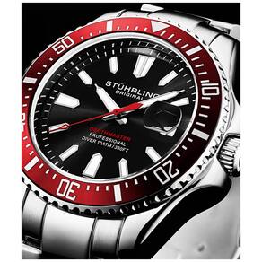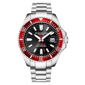 Prepare se para aprofundar o Depthmaster 3950A da Sthrling. Tamanho da caixa 42mm FÁCIL DE LER mãos e índices luminescentes em estilo bastão, coletados em um painel de borda de moeda e finalizados com uma coroa de rosca assinada. Movimento Miyota ULTRA ACCURATE. Pulseira de ligação em aço inoxidável de linha tripla totalmente ajustável com fecho de segurança implantante de botão. RESISTENTE À ÁGUA até 10 ATM 100 metros , 330 pés , adequado para natação e mergulho com snorkel