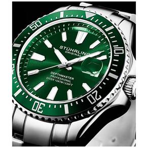 Prepare se para ir mais fundo com o Depthmaster 3950A da Sthrling. Tamanho da Caixa 42mm Ponteiros e índices luminescentes em estilo bastão FÁCEIS DE LER, reunidos em uma moldura de borda de moeda e finalizados com uma coroa rosqueada assinada. Movimento Miyota ULTRA PRECISO. Pulseira de aço inoxidável de fileira tripla TOTALMENTE AJUSTÁVEL com fecho de segurança com botão de pressão. RESISTENTE À ÁGUA até 10 ATM 100 metros, 330 pés, adequado para natação e mergulho