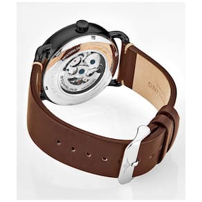 O design simplificado encontra uma execução ousada no Mantra, um relógio automático sob medida criado com estilo em mente. Tamanho da caixa 42mm Mantenha seu tempo livre com ponteiros luminosos no estilo de seringa, algarismos arábicos e marcadores de índice contidos em uma impressionante moldura de aço inoxidável polido. Um poderoso movimento automático está em exibição total no mostrador esqueletizado e no fundo da caixa da exposição. Acabado com uma pulseira de couro de com costura contrastante, combinando estilo elegante e conforto superior