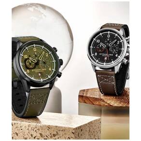 Abrace o estilo atemporal do Volda Aviator. Esteja você voando acima das nuvens para o seu próximo destino ou passando um tempo com amigos aqui em casa, o Volda tem o que você precisa. Apresentando um taquímetro e uma janela de data, este cronógrafo irá mantê lo informado sobre sua próxima aventura. E com uma pulseira de couro e fivela de aço, você nem vai saber que está usando. Você nunca sabe onde vai parar, mas com o taquímetro do Volda, você sempre estará preparado. Nunca perca outra reunião com este cronógrafo de precisão e sua exibição de janela de data. Com uma pulseira de couro e fivela de aço, este relógio é construído para conforto e aventura. Tamanho da Caixa 45mm Resistente à água 5 ATM 50 metros, 165 pés Pulseira de couro de largura