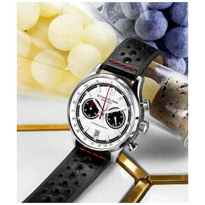 Acabamento com uma impressionante pulseira de couro perfurado para deixar outros cronógrafos comendo poeira