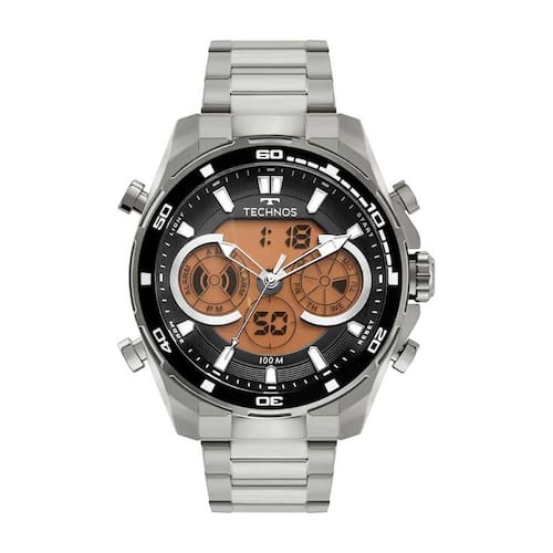 Relógio Masculino Technos Performance BJ3530AE/1P Prata Relógio Masculino Technos Anadigi Possui incrível design, deixando seu look mais despojado e elegante ao mesmo tempo. Além disso, foram confeccionados com material de primeiríssima qualidade, tornando-o resistente e durável. Características:ean: 7891530837814Marca: TechnosModelo: BJ3530AE/1PMecanismo: Analógico/digitalCor da caixa: PrateadoCor da pulseira: PrateadoCor do bisel: PretoMaterial da caixa: AçoMaterial da pulseira: AçoResistência à Água: 10ATMRelógio com calendário dia do mês e dia da semana, formato 12/24h, bip de hora cheia, alarme, luz de display e ponteiros fosforescentes Dimensões da Embalagem:Altura: 10cmLargura: 12cmProfundidade: 16cmPeso: 0,300KgGarantia: 12 Meses