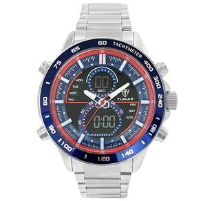 Relógio Masculino Tuguir Anadigi Tg1156 Prata E Azul O Relógio Masculino Tuguir Anadigi Tg1156 é perfeito para quem busca estilo e funcionalidade em um único produto. Com um design moderno e sofisticado, esse relógio se destaca pela sua cor prata e detalhes em azul, que conferem um toque diferencial ao visual. Esse relógio possui um mostrador analógico com um único horário, além de um visor digital que exibe informações como o dia da semana e do mês. Com essa funcionalidade, você nunca mais vai perder a noção do tempo e poderá se programar com mais facilidade. Além disso, o Relógio Masculino Tuguir Anadigi Tg1156 possui diversas outras características que o tornam ainda mais completo. Ele conta com calendário, despertador, cronômetro e luz de iluminação na cor verde, facilitando a visualização das informações mesmo em ambientes com pouca luminosidade. Esse relógio também é resistente à água, suportando até 5 ATM . Isso significa que você pode usá-lo para nadar no raso e em atividades do dia a dia, como lavar o carro e a louça, sem se preocupar com danos ao relógio. O Relógio Masculino Tuguir Anadigi Tg1156 possui uma caixa de metal banhado a IP na cor prata, que confere durabilidade e resistência ao produto. Sua pulseira é feita em aço na cor prata, garantindo conforto e estilo ao usar o relógio. Com alimentação por bateria interna, esse relógio é prático e fácil de usar. Além disso, ele possui de 12 meses, garantindo a sua qualidade e durabilidade. Conteúdo da embalagem: - 01 Relógio Tuguir Anadigi Tg1156 - 01 Embalagem - 01 Termo de O Relógio Masculino Tuguir Anadigi Tg1156 é a escolha perfeita para quem busca um relógio de qualidade, com design moderno e funcionalidades que facilitam o dia a dia. Não perca tempo e adquira o seu agora mesmo! Marca: Não Informado Ean: 7891368312972