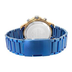 Com vidro em cristal mineral e fecho dobrável com botão, este relógio possui uma caixa rosê em metal banho IP, com formato redondo e diâmetro de 46,00 mm, além de uma pulseira azul em aço, com largura de 20,00 mm e comprimento máximo de 240,00 mm.