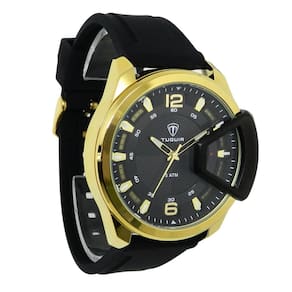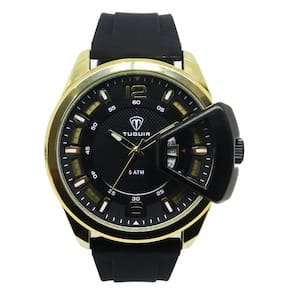 Relógio Masculino Tuguir Analógico 2397 Dourado e Preto ou AmareloMarca: Tuguir Categoria: Analógico Analógico: Sim (1 Horário) Ponteiros Fluorescentes: Não Digital: Não Luz: NãoResistente à Água: 5 ATM (Pode ser utilizado para nadar no raso, por pouco tempo submerso) - Respingos: Sim - Chuva: Sim - Lavar Carro: Sim - Lavar Louça: Sim - Natação: Sim - Mergulho: Não Característica do Vidro: Cristal Mineral Tipo de Fecho: Fivela Cor da Caixa: Dourado Material da Caixa: Metal Banho IP Formato da Caixa: Redondo Diâmetro da Caixa: 48,00 (mm) Espessura da Caixa: 12,00 (mm) Cor da Pulseira: Amarelo ou Preto Material da Pulseira: Silicone Largura da Pulseira: 20,00 (mm) Comprimento Máximo da Pulseira: 260,00 (mm) Alimentação: Bateria Interna Peso Líquido: 0,100 Kg Modelo: 2397 Cor Predominante: Dourado Garantia: 12 MesesConteúdo da Embalagem:01 Relógio 01 Embalagem 01 Termo de Garantia