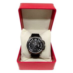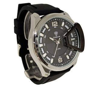 Marca: Tuguir Categoria: Analógico Analógico: Sim (1 Horário) Ponteiros Fluorescentes: Selecione Digital: Não Mostra o Dia do Mês: Sim Luz: Selecione Resistente à Água: 5 ATM - Respingos: Sim - Chuva: Sim - Lavar Carro: Sim - Lavar Louça: Sim - Natação: Sim - Mergulho: Não Característica do Vidro: Cristal Mineral Tipo de Fecho: Fivela Cor da Caixa: Prata Material da Caixa: Metal Banho IP Formato da Caixa: Redondo Diâmetro da Caixa: 48,00 (mm) Espessura da Caixa: 12,00 (mm) Cor da Pulseira: Preto Material da Pulseira: Borracha Largura da Pulseira: 19,50 (mm) Comprimento Máximo da Pulseira: 260,00 (mm) Alimentação: Bateria Interna Peso Líquido: 0,090 Kg Modelo: 2397 Cor Predominante: Prata Cor Diferencial: Preto Garantia: 12 Meses