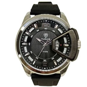 Relógio Masculino Tuguir ógico 2397 Prata e Preto Relógio Masculino Tuguir ógico 2397 Prata e Preto Marca: Tuguir Categoria: ógico ógico: Sim 1 Horário Ponteiros Fluorescentes: Selecione Digital: Não Mostra o Dia do Mês: Sim Luz: Selecione Resistente à Água: 5 ATM Pode ser para nadar no raso, por pouco tempo submerso - Respingos: Sim - Chuva: Sim - Lavar Carro: Sim - Lavar Louça: Sim - Natação: Sim - Mergulho: Não Característica do Vidro: Cristal Mineral Tipo de Fecho: Fivela Cor da Caixa: Prata Material da Caixa: Metal Banho IP Formato da Caixa: Redondo Diâmetro da Caixa: 48,00 mm Espessura da Caixa: 12,00 mm Cor da Pulseira: Preto Material da Pulseira: Borracha Largura da Pulseira: 19,50 mm Comprimento Máximo da Pulseira: 260,00 mm Alimentação: Bateria Interna Peso Líquido: 0,090 Kg Modelo: 2397 Cor Predominante: Prata Cor Diferencial: Preto : 12 Meses Conteúdo da Embalagem: 01 Relógio 01 Embalagem 01 Termo de Marca: Não Informado