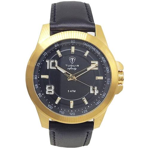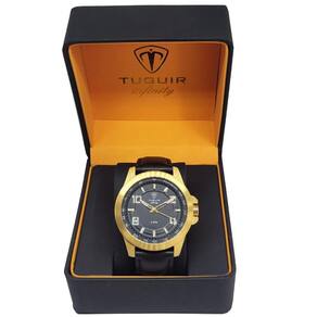 Relógio Masculino Tuguir ógico Infinity TGI37105 Preto e Dourado Relógio Masculino Tuguir ógico Infinity TGI37105 Preto e Dourado Marca: Tuguir Categoria: ógico ógico: Sim 1 Horário Ponteiros Fluorescentes: Sim Digital: Não Calendário: Não Despertador: Não Mostra o Dia da Semana: Não Mostra o Dia do Mês: Não Cronômetro: Não Contador Regressivo: Não Luz: Não Resistente à Água: 5 ATM Pode ser para nadar no raso, por pouco tempo submerso - Respingos: Sim - Chuva: Sim - Lavar Carro: Sim - Lavar Louça: Sim - Natação: Sim - Mergulho: Não Característica do Vidro: Cristal Mineral Tipo de Fecho: Fivela Cor da Caixa: Dourado Material da Caixa: Aço Formato da Caixa: Redondo Diâmetro da Caixa: 45,00 mm Espessura da Caixa: 10,50 mm Cor da Pulseira: Preto Material da Pulseira: Couro Largura da Pulseira: 20,50 mm Comprimento Máximo da Pulseira: 240,00 mm Alimentação: Bateria Interna Peso Líquido: 0,033 Kg Modelo: 9167E Cor Predominante: Preto Cor Diferencial: Dourado : 12 Meses Conteúdo da Embalagem: 01 Relógio 01 Embalagem 01 Termo de Marca: Não Informado
