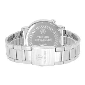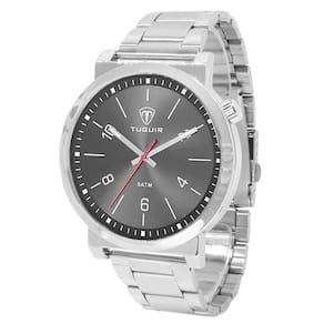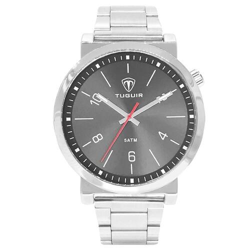 Relógio Masculino Tuguir Analógico TG168 - Prata e Preto Marca: Tuguir Categoria: Analógico Analógico: Sim 1 Horário Ponteiros Fluorescentes: Não Digital: Não Calendário: Não Despertador: Não Mostra o Dia da Semana: Não Mostra o Dia do Mês: Não Cronômetro: Não Contador Regressivo: Não Luz: Não Resistente à Água: 5 ATM Pode ser Utilizado para nadar no raso, por pouco tempo submerso - Respingos: Sim - Chuva: Sim - Lavar Carro: Sim - Lavar Louça: Sim - Natação: Sim - Mergulho: Não Característica do Vidro: Cristal Mineral Tipo de Fecho: Dobrável com Botão Cor da Caixa: Prata Material da Caixa: Metal Banho IP Formato da Caixa: Redondo Diâmetro da Caixa: 47,00 mm Espessura da Caixa: 9,00 mm Cor da Pulseira: Prata Material da Pulseira: Aço Largura da Pulseira: 19,60 mm Comprimento Máximo da Pulseira: 230,00 mm Alimentação: Bateria Interna Peso Líquido: 0,097 Kg Modelo: TG168 Cor Predominante: Prata Cor Diferencial: Preto : 12 Meses Conteúdo da Embalagem: 01 Relógio 01 Embalagem 01 Termo de