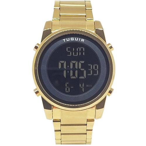 Relógio Masculino Tuguir Digital TG30325 Dourado Relógio Masculino Tuguir Digital TG30325 Dourado Marca: Tuguir Categoria: Digital Analógico: Não Digital: Sim 2 Horário Calendário: Sim Despertador: Sim Mostra o Dia da Semana: Sim Mostra o Dia do Mês: Sim Cronômetro: Sim Contador Regressivo: Sim Luz: Sim Cor da Iluminação: Resistente à Água: 3 ATM Resiste a imersões breves - Respingos: Sim - Chuva: Sim - Lavar Carro: Sim - Lavar Louça: Sim - Natação: Não - Mergulho: Não Característica do Vidro: Cristal Mineral Tipo de Fecho: Dobrável com Botão e Trava Cor da Caixa: Dourado Material da Caixa: Metal Banho IP Formato da Caixa: Redondo Diâmetro da Caixa: 42,00 mm Espessura da Caixa: 12,00 mm Cor da Pulseira: Dourado Material da Pulseira: Aço Largura da Pulseira: 19,50 mm Comprimento Máximo da Pulseira: 230,00 mm Alimentação: Bateria Interna Peso Líquido: 0,110 Kg Modelo: TG30325 Cor Predominante: Dourado Garantia: 12 Meses