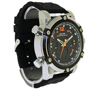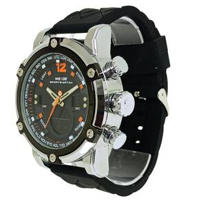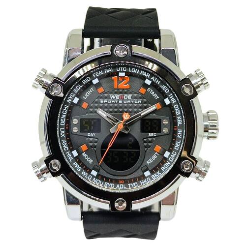 Relógio Masculino Weide AnaDigi WH-5205 Prata e Preto e LaranjaMarca: Weide Categoria: AnaDigi Analógico: Sim (1 Horário) Ponteiros Fluorescentes: Selecione Digital: Sim (1 Horário) Despertador: Sim Mostra o Dia da Semana: Sim Mostra o Dia do Mês: Sim Cronômetro: Sim Luz: Sim Cor da Iluminação: VerdeResistente à Água: 3 ATM (Resiste a imersões breves) - Respingos: Sim - Chuva: Sim - Lavar Carro: Sim - Lavar Louça: Sim - Natação: Não - Mergulho: Não Característica do Vidro: Cristal Mineral Tipo de Fecho: Fivela Cor da Caixa: Prata Material da Caixa: Metal Banho IP Formato da Caixa: Redondo Diâmetro da Caixa: 49,50 (mm) Espessura da Caixa: 18,00 (mm) Cor da Pulseira: Preto Material da Pulseira: Silicone Largura da Pulseira: 23,50 (mm) Comprimento Máximo da Pulseira: 250,00 (mm) Alimentação: Bateria Interna Peso Líquido: 0,130 Kg Modelo: WH-5205 Cor Predominante: Prata Cor Diferencial: Preto e Laranja Garantia: 12 MesesConteúdo da Embalagem: 01 Relógio 01 Embalagem 01 Termo de Garantia