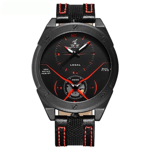 Relógio Masculino Weide Analógico UV-1703 - Preto e Vermelho Relógio Masculino Weide Analógico UV-1703 - Preto e Vermelho Marca: Weide Categoria: Analógico Analógico: Sim 2 Horário Ponteiros Fluorescentes: Sim Digital: Não Calendário: Não Despertador: Não Mostra o Dia da Semana: Não Mostra o Dia do Mês: Não Cronômetro: Não Contador Regressivo: Não Luz: Não Resistente à Água: 3 ATM Resiste a imersões breves - Respingos: Sim - Chuva: Sim - Lavar Carro: Sim - Lavar Louça: Sim - Natação: Não - Mergulho: Não Característica do Vidro: Cristal Mineral Tipo de Fecho: Fivela Cor da Caixa: Preta Material da Caixa: Metal Alloy Formato da Caixa: Redondo Diâmetro da Caixa: 49,00 mm Espessura da Caixa: 10,60 mm Cor da Pulseira: Preta Material da Pulseira: Couro Largura da Pulseira: 21,70 mm Comprimento Máximo da Pulseira: 240,00 mm Alimentação: Bateria Interna Peso Líquido: 0,088 Kg Modelo: UV-1703 Cor Predominante: Preto Cor Diferencial: Vermelho Garantia: 12 Meses Conteúdo da Embalagem: 01 Relógio 01 Embalagem 01 Termo de Garantia