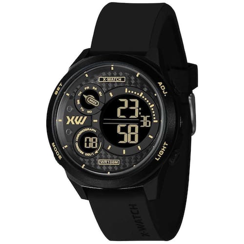 O Relógio Masculino XMPPD662 PXPX da X-Watch é o acessório perfeito para utilizar em qualquer ocasião. Confeccionado com alta qualidade e um design diferenciado, este relógio é ideal para deixar seus looks mais charmosos e acrescentar praticidade ao seu dia-a-dia. Seu modelo atemporal, combinado com sua ótima funcionalidade, resulta em uma peça bonita e moderna.EspecificaçõesMarca: X-WatchGênero: Masculino Modelo: XMPPD662 PXPXCor da pulseira: PretoCor do mostrador: Preto com detalhes em douradoMaterial da caixa: ResinaMaterial da pulseira: SiliconeMaterial do vidro: AcrílicoTamanho da caixa: 48 mmResistente a água: SimNível de resistência a água: 100 mFunções: Digital, Iluminação, Calendário, Cronógrafo, Alarme, Timer, Dual TimeAlimentação: BateriaFundo: ParafusadoGarantia: 1 anoAviso: Imagem meramente ilustrativa. Pode haver alteração da cor, conforme o seu monitor. Marca: X-Watch
