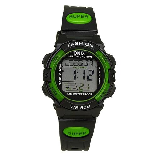 Relógio Menina Onix Digital IT-619 (0162) Preto e VerdeMarca: Onix Categoria: Digital Analógico: Não Digital: Sim (1 Horário) Calendário: Sim Despertador: Sim Mostra o Dia da Semana: Sim Mostra o Dia do Mês: Sim Cronômetro: Sim Luz: Sim Cor da Iluminação: VerdeResistente à Água: 5 ATM (Pode ser utilizado para nadar no raso, por pouco tempo submerso) - Respingos: Sim - Chuva: Sim - Lavar Carro: Sim - Lavar Louça: Sim - Natação: Sim - Mergulho: Não Característica do Vidro: Acrílico Tipo de Fecho: Fivela Cor da Caixa: Preto Material da Caixa: Plástico Formato da Caixa: Redondo Diâmetro da Caixa: 34,00 (mm) Espessura da Caixa: 15,00 (mm) Cor da Pulseira: Preto Material da Pulseira: Plástico Largura da Pulseira: 14,50 (mm) Comprimento Máximo da Pulseira: 230,00 (mm) Alimentação: Bateria Interna Peso Líquido: 0,027 Kg Modelo: IT-619 (0162) Cor Predominante: Preto Cor Diferencial: Verde Garantia: 12 MesesConteúdo da Embalagem: 01 Relógio 01 Embalagem 01 Termo de Garantia