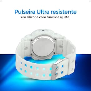 1. Relógio Digital Infantil Orizom Kids - Marca: Orizom - Modelo: Kids, Linha Pequeno Astronauta - Cor: Todo branco - Mostrador: Digital com números grandes para fácil leitura - Pulseira: Silicone ajustável, confortável, servindo em qualquer tamanho de pulso infantil - Funções: Exibe as horas com precisão e luz de LED para visualização em ambientes escuros (variação de cor azul ou vermelho, conforme disponibilidade) - Resistente: Perfeito para uso diário, leve e durável