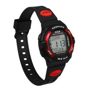 Relógio Menino Onix Digital IT-619 (0128) Preto e VermelhoMarca: Onix Categoria: Digital Analógico: Não Digital: Sim (1 Horário) Calendário: Sim Despertador: Sim Mostra o Dia da Semana: Sim Cronômetro: Sim Luz: Sim Cor da Iluminação: VerdeResistente à Água: 5 ATM (Pode ser utilizado para nadar no raso, por pouco tempo submerso) - Respingos: Sim - Chuva: Sim - Lavar Carro: Sim - Lavar Louça: Sim - Natação: Sim - Mergulho: Não Característica do Vidro: Acrílico Tipo de Fecho: Fivela Cor da Caixa: Preto Material da Caixa: Plástico Formato da Caixa: Redondo Diâmetro da Caixa: 34,00 (mm) Espessura da Caixa: 14,50 (mm) Cor da Pulseira: Preto Material da Pulseira: Plástico Largura da Pulseira: 14,00 (mm) Comprimento Máximo da Pulseira: 230,00 (mm) Alimentação: Bateria Interna Peso Líquido: 0,025 Kg Modelo: IT-619 (0128) Cor Predominante: Preto Cor Diferencial: Vermelho Garantia: 12 MesesConteúdo da Embalagem: 01 Relógio 01 Embalagem 01 Termo de Garantia