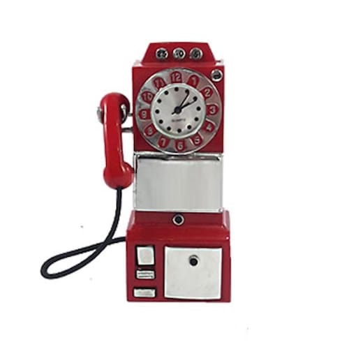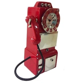 LOJA TACOLANDIA Relógio Mesa Miniatura Aço TelefoneMedida: 7,5x3,1x2,5cmRELÓGIO FUNCIONA A BATERIA (não acompanha)