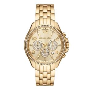 Feminino Ref: Mk7250/4dn Cronógrafo Dourado DESCRIÇÃO DO PRODUTO: Caixa de Metal Dourada Pulseira de Aço Dourada Vidro de Cristal Mineral Fundo Pressão Resistente à Água 3 Atm Diâmetro / Largura da Caixa: 42.00 Mm Altura da Caixa: 12.00 mm Função: Analógico, Cronógrafo, Calendário Linha: Michael Kors Jetset Mostrador dourado com números e pedras Aro externo de pedras Alimentação do Maquinário: Bateria Marca: Não Informado