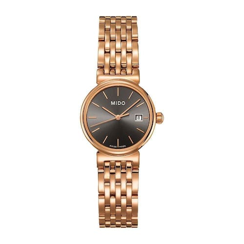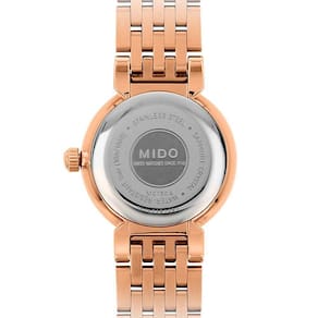 Marca: Mido;Modelo: M2130.3.13.1;Gênero: Feminino;Movimento: Quartz;Material da Caixa: Aço inoxidável;Cor da Caixa: Rose;Formato da Caixa: Redondo;Display/mostrador: Analógico;Ponteiros: Rose;Possui Calendário: Sim;Material da Pulseira: Aço inoxidável;Cor da Pulseira: Rose;Tipo de Vidro: Safira;Resistência à Água: 03ATM;Permite Lavar as Mãos: Sim;Permite Respingos de Chuva: Sim;Permite Entrar na Piscina: Não;Permite Entrar No Mar: Não;Permite Nadar Com o Relógio: Não;Permite Usar No Banho Quente: Não;Diâmetro da Caixa: Aprox.: 24,40mm;Diâmetro da Caixa Com a Coroa: Aprox.: 27,40mm;Altura da Caixa: Aprox.: 24,40mm;Espessura da Caixa: Aprox.: 06,71mm;Peso Aprox.: 60g; Funções do Relógio: Hora e data;Outros Detalhes: Fundo prensado; Acompanha: Caixa, Manual, Certificado de Garantia e NF-eGarantia de Fábrica: 02 anos com nota fiscal eletrônica;Garantia válida em todo o território nacional. Se o produto adquirido apresentar algum tipo de problema durante o período de garantia, encaminhar diretamente à uma Assistência Técnica Autorizada da marca mais próxima de seu endereço. Código de Barras: 7612330120810;