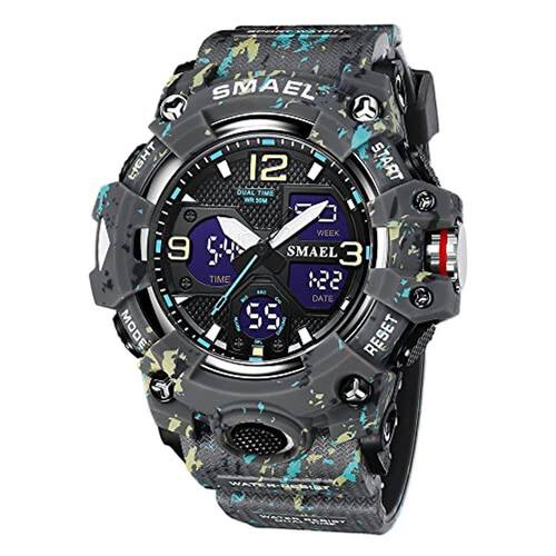 Relógio militar masculino SMAEL Relógio digital LED ao ar livre à prova d'água, , relógio esportivo de pulso militar para homens Camo Gray_8008