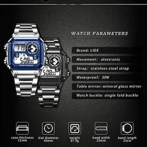 Especificações [Design sofisticado:] Com mostrador quadrado e vidro Hardlex, este relógio ocupa um lugar único entre os acessórios de moda, garantindo um visual contemporâneo e fora do comum. [Conforto premium:] Pulseira de aço inoxidável de 23mm de largura e 23cm de comprimento que assegura um ajuste confortável e durável ao usuário. [Funções úteis:] Oferece recursos como luminosidade, luz de fundo, resistência a choques, cronógrafo e calendário completo, atendendo as necessidades modernas de qualquer homem ativo. [Durabilidade robusta:] Equipado com um material resistente, é construído para suportar o uso diário sem perder sua elegância. [Performance confiável:] Bateria inclusa e movimento digital preciso garantem que você nunca perca uma batida.