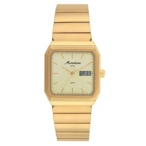 Relógio Mondaine 32889GPMVDA1 Dourado Mondaine 70 Anos Masculino Anadigi A Linha 1954 da Mondaine reafirma a tradição da marca em unir design elegante e tecnologia moderna. O modelo Dourado destaca-se pela caixa em aço quadrada de 30x35mm e mostrador champagne, que traduzem sofisticação e exclusividade. A combinação entre o analógico e o digital oferece funcionalidade completa, mantendo a estética refinada que caracteriza esta coleção. Sua pulseira em aço dourado com fecho borboleta proporciona ajuste confortável e seguro, tornando o relógio ideal para acompanhar tanto ocasiões especiais quanto o dia a dia. A resistência à água de 5 ATM adiciona praticidade, assegurando durabilidade e confiança em cada detalhe. Este modelo reflete o equilíbrio perfeito entre tradição e inovação. O acabamento dourado é um diferencial que transmite imponência e personalidade. Versátil, combina com visuais elegantes e modernos, reforçando o status de quem o utiliza. Um relógio pensado para quem deseja aliar funcionalidade e presença marcante em um único acessório. Especificações Técnicas Mecanismo: Analógico Quartzo Gênero: Masculino Visor: Dourado Vidro: Cristal Mineral Prova d'água: 50m Diâmetro da caixa: 30x35 mm Largura da pulseira: 18 mm Tamanho do Vidro: 24 mm : 12 meses pela fabricante Mondaine Marca: Não Informado Ean: 7909669201625